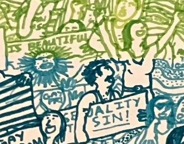 I draw using marker pen on card. I specialise in music and travel feature writing, and in 2009 I won a Guardian Media Award. In 2018 my poetry book, Across New Zealand in 140 Hitchhikes, was published by Paekakariki Press.