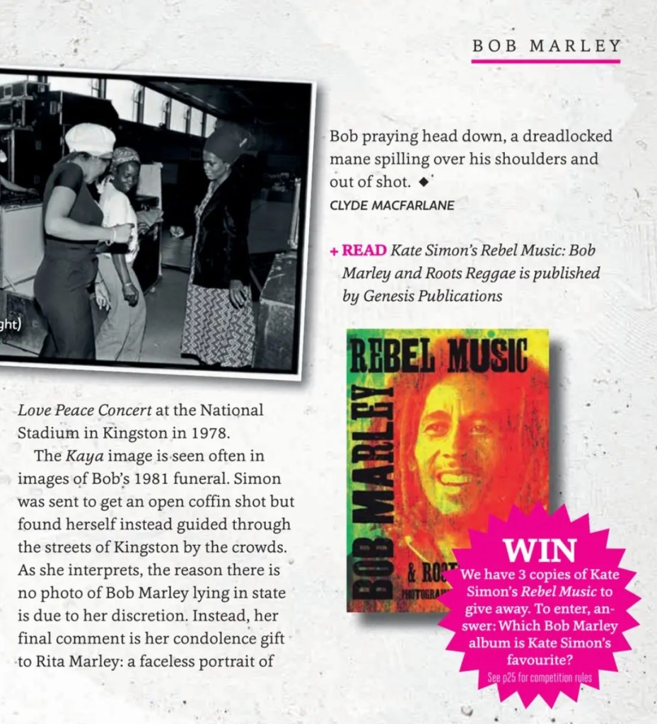 I interviewed photographer Kate Simon about her relationship with Bob Marley